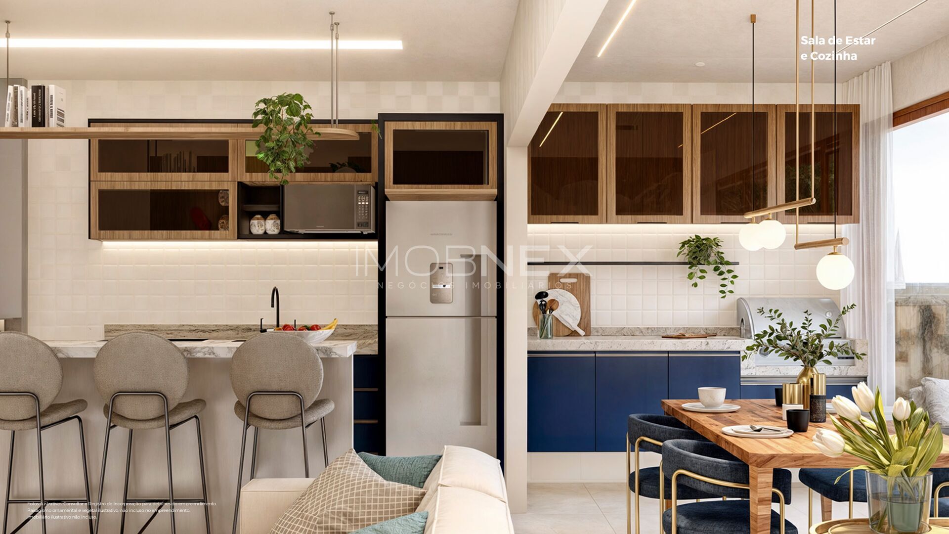 - Salas amplas integradas à cozinha