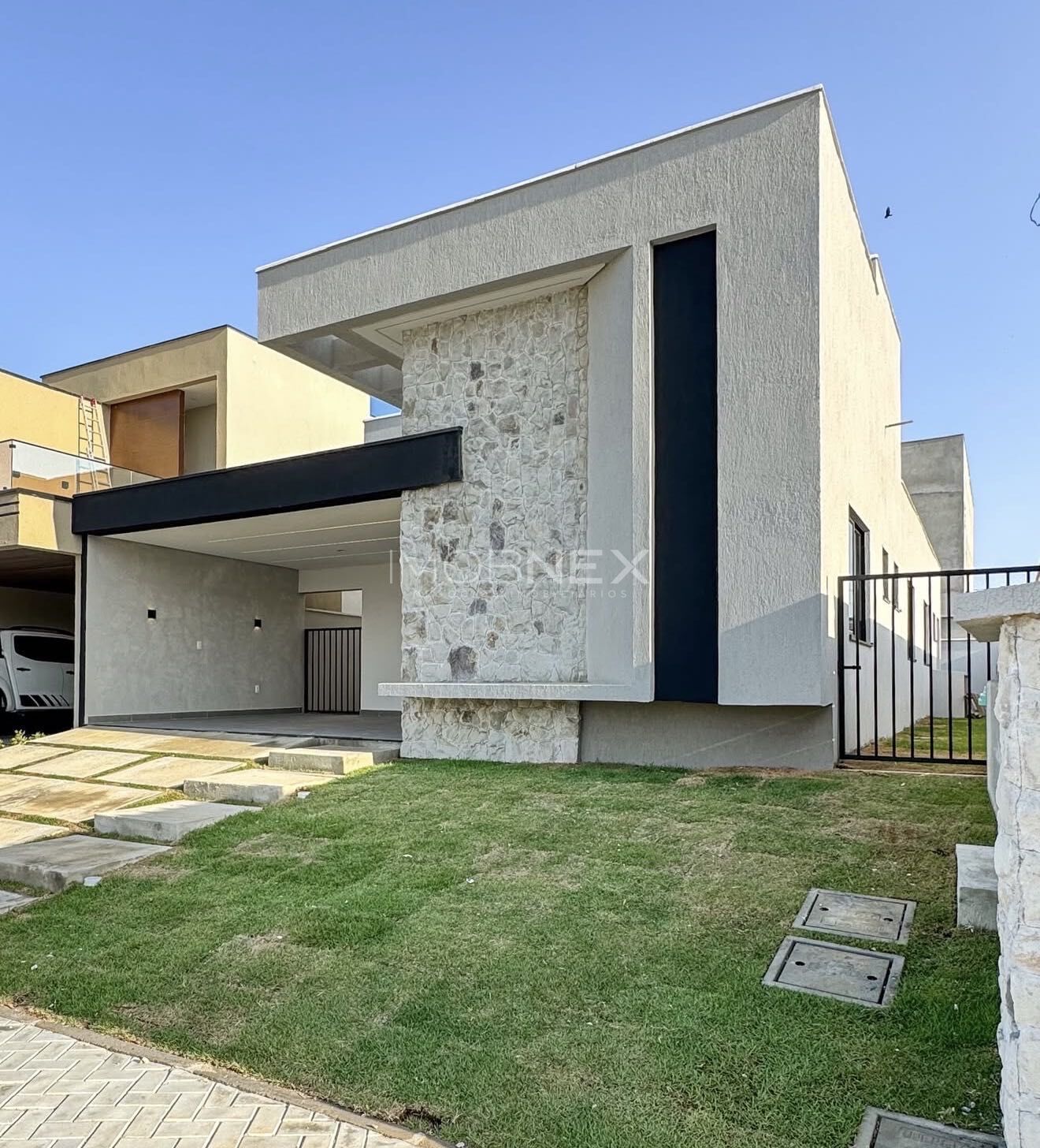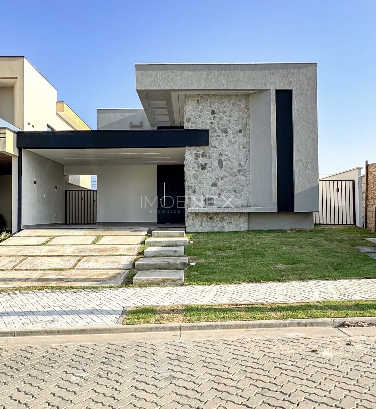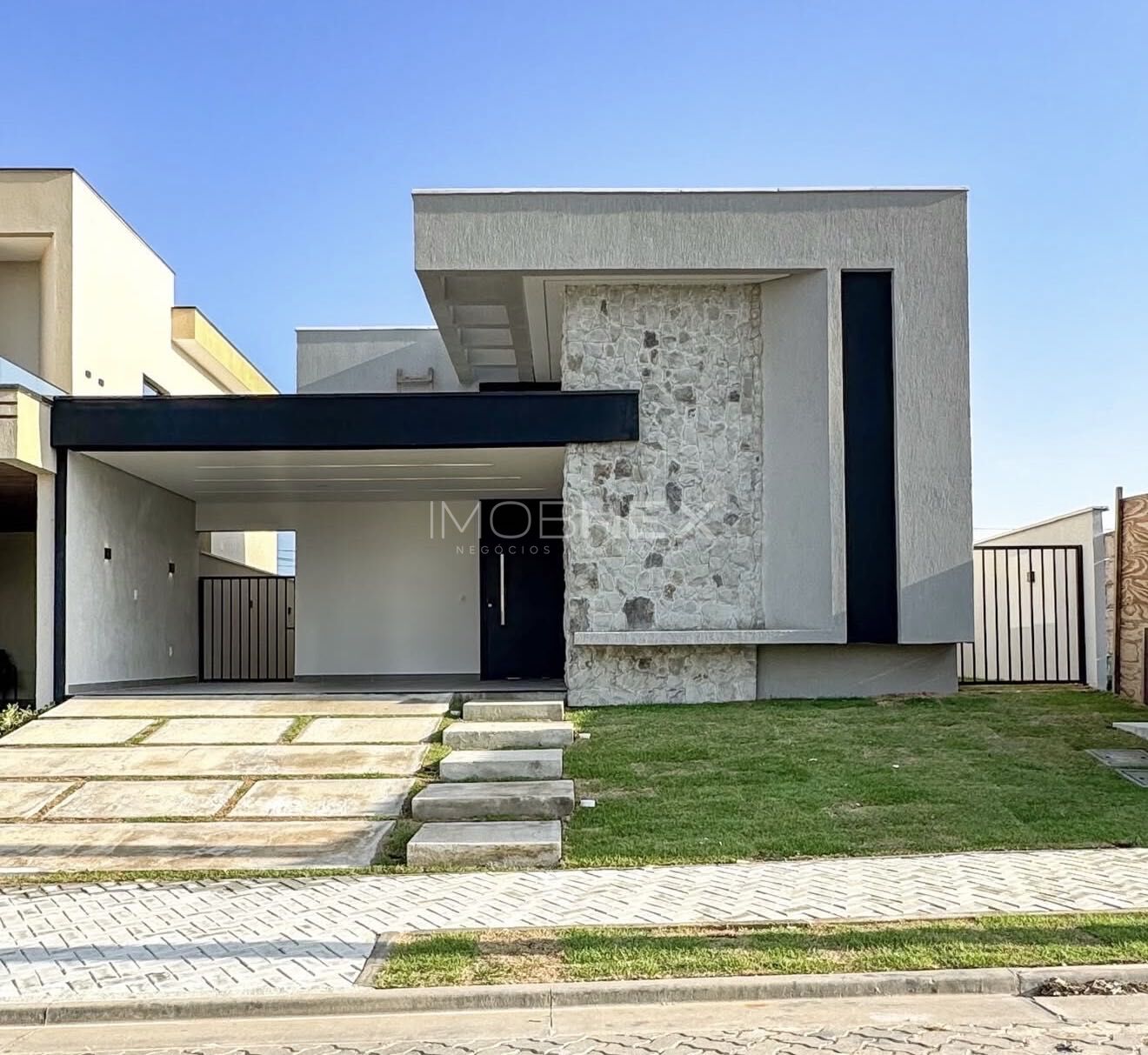 • Fachada contemporânea em pedra